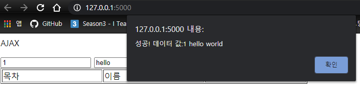 // ajax 형식으로 -> ajax example.py로 데이터 전송